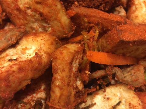 2 miếng đậu hũ chiên vàng cắt miếng vừa ăn
