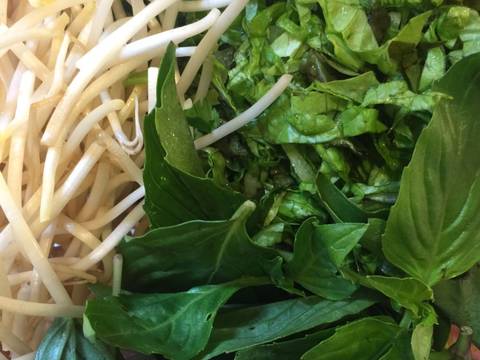 Các loại rau thơm lặt rửa sạch để ráo, rau xà lách lặt rữa sạch xắt ghém để ráo.Bắp chuối bài mỏng ngâm với chanh cho trắng,rau muống chẻ sợi.