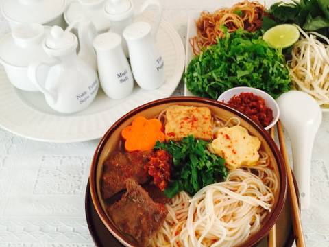 Rau ăn kèm : bắp chuối, rau muống bào,xà lách, rau kinh giới, giá..