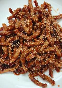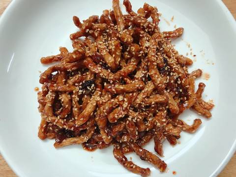 Và cuối cùng, bỏ ra dĩa và rắc lên xíu mè cho đẹp mắt nào. Tararaaaa. Xong:)))) Bữa chay đạm bạc cho đầu tháng nhé:)