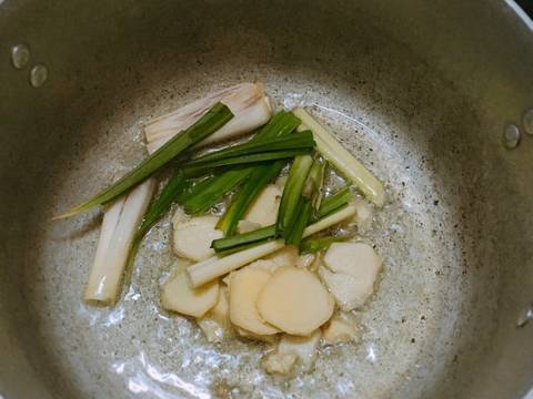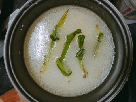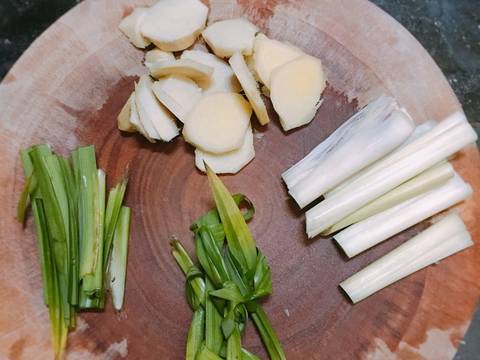 Gừng mình xắt lát và đập dập. Lá dứa rửa sạch, 1 nửa mình cắt khúc còn 1 nửa mình cột lá lại. Sả mình cắt làm 3 khúc đập dập