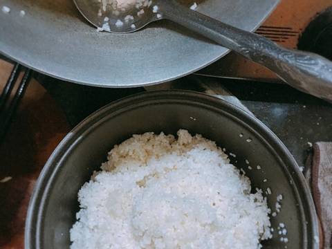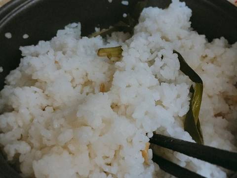 Đổ gạo vào nồi cơm điện, canh cho nước lọc vào nấu như nấu cơm trắng. Phần nước lọc, đối với hạt gạo khô cần cho nhiều nước như mình thì nêm 2m cf hạt nêm chay, 2m cf bột ngọt, 1m cf muối. Đối với gạo dẻo cho ít nước khi nấu thì cho gia vị ít lại 1 chút nhé. Tiếp đến cho phần lá dứa được cột lại vào nồi cơm.