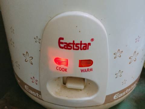 Cho xoong cơm vào nồi điện và nhấn cook. Nếu đèn nhảy qua warm thì mở nắp nồi, dùng đũa sới cơm lên cho đều, đóng nắp lại và nhấn cook thêm lần nữa, đợi cơm nhảy sang nút warm lần 2 là ok. Vậy là xong cơm gà chay thơm ngon rồi !
