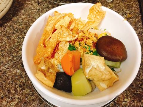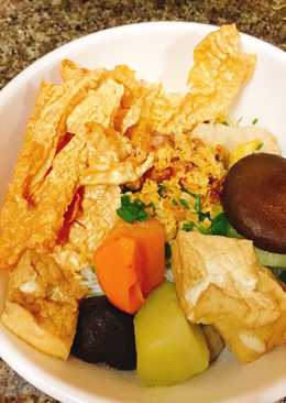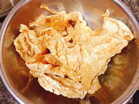 3. Bắt chảo dầu cho thật nóng chiên đậu hủ ky, nhớ là đậu hủ vừa vàng vớt ra nhe các bạn để lâu sẽ bị cháy. Bởi đậu ky mỏng… để đậu ky này qua 1 bên khi nào ăn thì mới cho vào thì ngon hơn