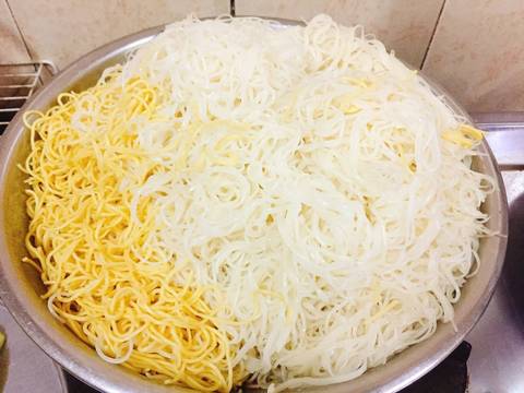 5. Bắt thêm khoảng 2 lít nước cho thật sôi cho chút dầu vào nước, luộc mì cho mềm vớt ra cho chút dầu vào mì trộn thật đều để ko bị vốn cục, hủ tiếu cũng vậy nhe các bạn chụn sơ vớt ra cho ít dầu vào