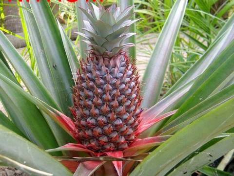 5. Trái dứa (thơm) lá chỉ có ít gai ở đầu mút lá, lá dài cong lòng máng, trái to, mắt to, nhiều nước, vỏ mỏng