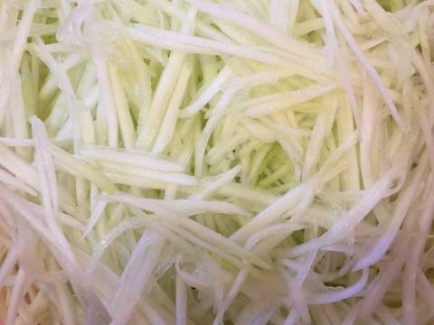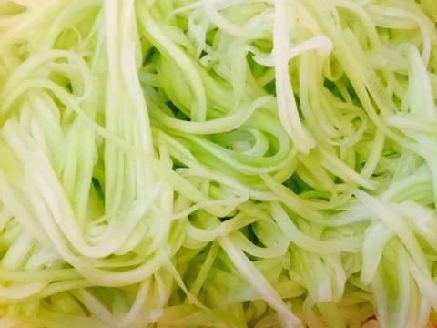 1. Bầu bỏ ruột, để nguyên vỏ, cắt sợi dài hoặc bào sợi