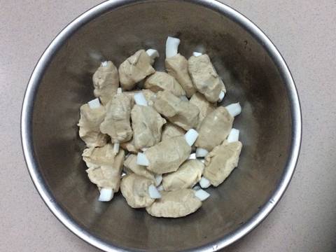 Sườn dừa mua ở tiệm bán đồ thực phẩm chay, được làm từ đạm đậu nành và dừa.