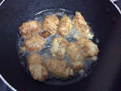 Sau đó chiên vàng sườn dừa.