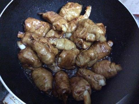 Cho phần sườn dừa chay đã chiên vào, đảo đều khi thấy hỗn hợp sốt me bám đều sườn dừa và sốt sánh cạn thì tắt bếp.